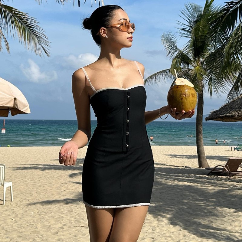 Stand Collar Single-breasted Lantern Sleeve Positioning Printing Dress Women